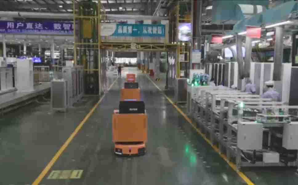 为车载冰箱物流配送打造的智能解决方案,,包含产中物流通过潜伏举升AMR搬运至线边,,产后成品物流智能仓储,,,,流程包含产中物流智能齐套入库,,,线边安灯叫料AMR智能配送至线边,,,成品入库、、出库,,,通过无人堆高车机器人,,智能仓储管理替代人工作业管理,,,,实现更高存储、、更高效率、、、更具柔性化的解决方案。。。