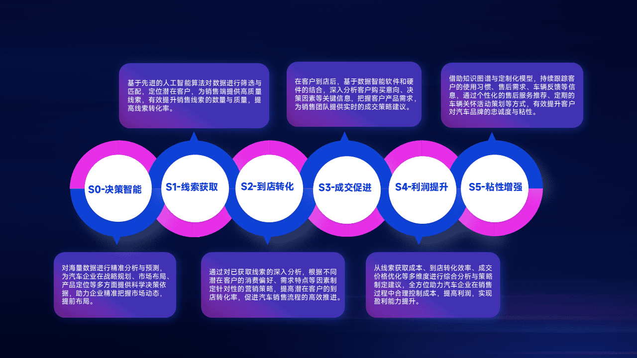 通过拓宽潜在客户来源、、优化线索分配并提高到店转化率,,,,以增强销售效率。。同时,,,利用线索数据不断优化分析模型,,有效提升转化率,,扩大营销影响力。。。